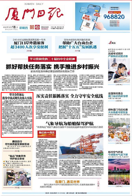 当前,厦门全市上下正深入学习宣传贯彻中共二十届四中全会精神,贯彻落实习近平总书记在福建、厦门考察时的重要讲话精神,全力以赴推进“十四五”圆满收官、“十五五”良好开局。大会要求厦门民进各级组织和广大会员始终坚守合作初心,在凝聚政治共识上展现新担当;始终围绕中心大局,在强化参政履职上展现新作为;始终坚持强基固本,在加强自身建设上展现新面貌,不断开创厦门多党合作事业新局面。