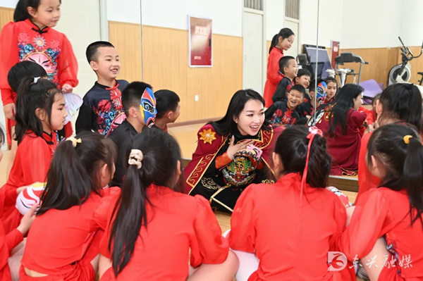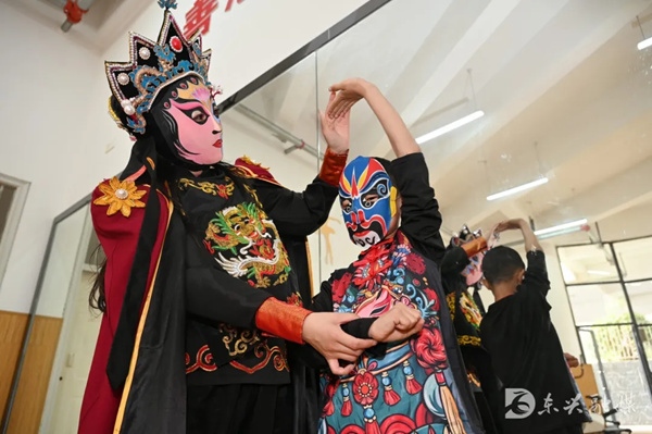 对于想深入学习川剧变脸技艺的学生,颜萍总是倾囊相授。学生孙熙雯在她的指导下,已能完成简单的变脸片段,并与老师同台演出。孙熙雯的妈妈感慨道:“孩子特别喜欢,她回家还变给他爸爸看,以后有机会还要继续跟着学。”