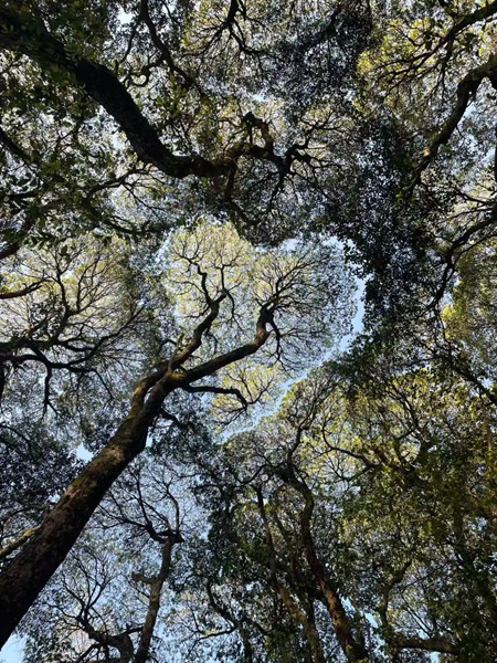 白露过后我应邀参加“第四届海派风尚节”开幕活动,有幸进入旗山。村里有一片幽深的古树林,每棵直指苍穹的苦槠树都有超过四百年的树龄,树冠边缘互相礼让,留出明晃晃的空隙,不经意间勾勒出一个巨大的心形图案,难道这是大自然的神谕?通向树林深处的小径由二十多块鹅卵石铺成,雕刻了当代艺术家徐冰的“天书”,破译后就是《桃花源记》里的一句话。