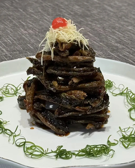 无锡饭店在传承的同时还勇于探索创新,这次我们也有机会品尝了几道新菜,比如无锡名馔梁溪脆鳝。他家通过迭代,形成了烟熏、烧烤、荔枝、鱼香、麻辣、香柠、酸辣、糟香、南乳等十二种味型,让这道被袁枚在《随园食单》里无情嘲笑过的老菜争取到新的表达空间。还有藤椒拌甲鱼裙边、白玉燕窝狮子头醉蟹腌鲜、芦蒿滑炒河豚丝、菜花鳖蹼㸆辽参、网烤脆鳞拆骨鲥鱼拼香酥鮰鱼等,也刷新了我对无锡菜的认知。太湖风味,时代审美,真心希望无锡菜回归大上海,为长三角融合作出新贡献!