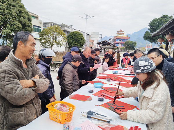 “这次活动是由民进市委主办,温州民进开明画院、民进温州市直属第三文艺支部、北山艺墅联合承办,今年首站在永嘉举行,接下来将在全市各地陆续开展活动。”温州民进开明画院副院长兼秘书长戴慧说,通过送福送春联的文艺形式,旨在传递“爱满民进”的温暖与力量,让村民开开心心过年。