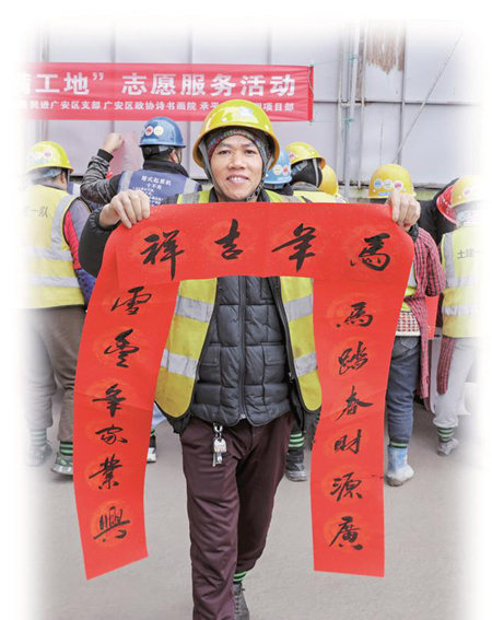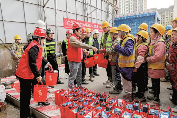 1月23日,广安区总工会联合区住房和城乡建设局、区政协诗书画院、民进广安区支部,在广安区中桥街道承平盛世八期建筑工地开展“温暖腊八 情满工地”志愿服务活动,为150余名工人送上热腾腾的腊八粥和饱含新春祝福的“大礼包”,并组织书法家现场为建筑工人书写春联、“福”字,区住房和城乡建设局、区总工会干部还为建筑工人送上建筑安全知识“大餐”。