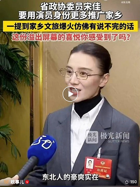 宋佳称,将用省政协委员身份为家乡父老发声、助力龙江发展,是光荣也是使命,要用演员身份更多推广家乡。
