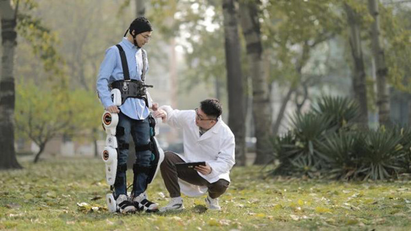 天津大学神经工程团队自主研发的首款神经调控式机械外骨骼机器人系统“神工-神甲”。天津大学 供图