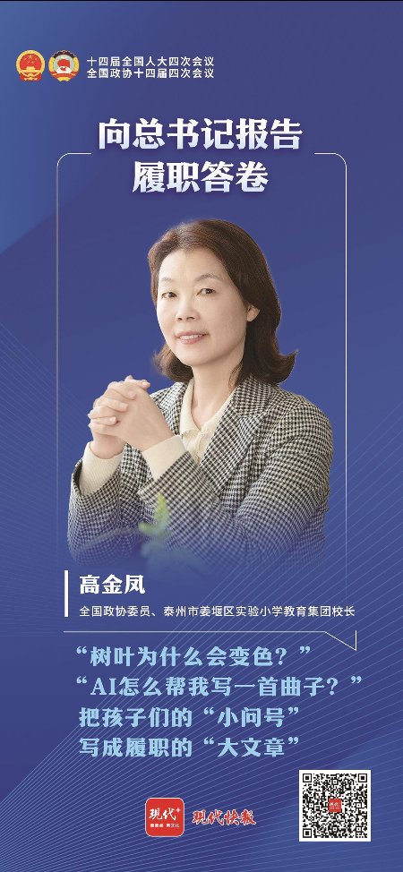 过去一年,高金凤把校园当作“调研基地”,她的足迹遍布江苏、北京、辽宁等地,捕捉教育实践中的痛点与难点。去年,面对一些孩子“从小手机就用得很溜”“写作业也会用AI”的现实情况,她提交的提升青少年网络素养相关提案,得到了教育部、中央网信办等部门的积极回应。2025年10月,教育部印发《进一步加强中小学生心理健康工作十条措施》,将“加强学生网络素养教育”“鼓励学生和家长共同开展‘息屏行动’”等内容纳入其中。高金凤真切感受到国家对学生网络素养的重视,也更加坚定了“为民发声、为教育代言”的履职信心。
