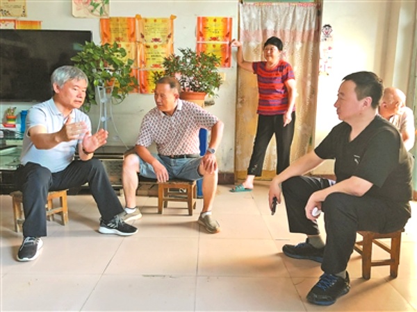 蔡继明(左一)入户调研中与村民交流。(受访者供图)