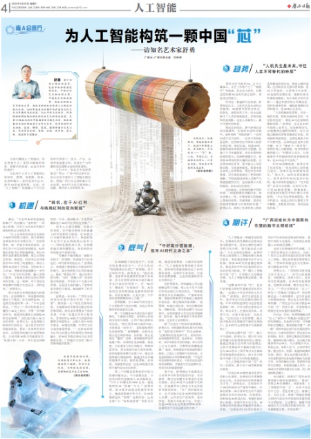 专访最后,舒勇对广西的AI发展和媒介转型充满期待:“看到广西勇立AI发展潮头,我很惊喜。人工智能的中国‘芯’,从来不仅是芯片之芯,更是伦理之芯、道德之芯、文化之芯,希望广西能在智能文明时代成长为中国面向东盟的数字文明枢纽,让这颗芯,随着中国AI技术与文化理念的春风化雨,在东盟落地生根、开花结果!”