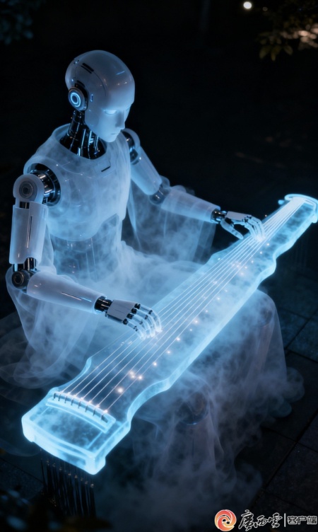 金属手指拨动古弦,代码奏鸣千年之音。机器模仿得了韵律,却学不会叹息。当科技吞没温度,再精确的琴声也只是回响。受访者供图