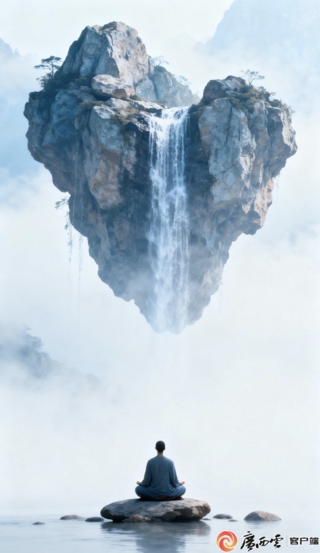 心形山峦悬于云雾,瀑布如念,垂落无声。思想者静坐石上,不问来处,不追去路,只在当下与天地共呼吸同命运。受访者供图