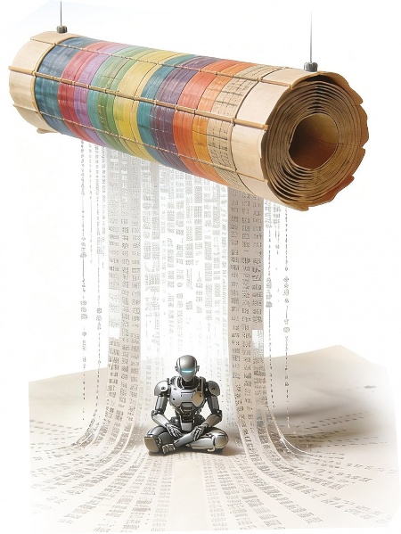 竹简垂文,如瀑倾泻,智能体静坐其下,承接千年智慧之光。非为取代,乃为传承——“芯”者,心也,中国之芯,当植根文化厚土,以算法为笔,写就东方智慧的未来篇章。(受访者供图)