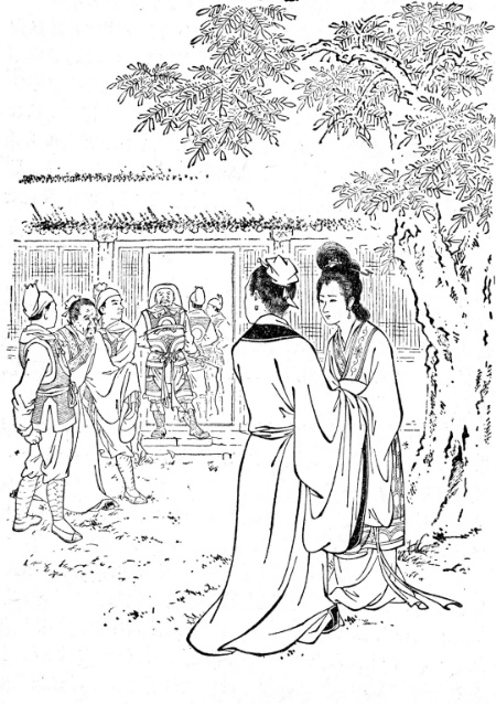 王叔晖在创作中,一方面坚持其美学思想,一方面注意透视关系、人体结构和素描关系。比如,张生在屋内隔着窗纸弹琴,不要说在晚上,即使在白天,我们也不能看得如此真切。王叔晖在这里使用了中国戏剧诗意审美语言,让大家在一幅图中,同时感受到莺莺的期待和张生的琴声。谁注意到这个细节呢?一般读者是注意不到的,这也是王叔晖的高明之处。