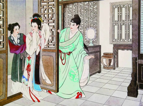 由此看来,她在对张生这个人物的刻画上是下了工夫、注入了情感的。她为这个人物定下的基调就是:一介书生,感情专一。张生的才情、气质,是王叔晖心目中的理想,也是我们普通读者喜爱的形象。在《西厢记》的16幅画面中,张生15次出现,在画面中换了七八套服装,在生活中似乎不大可能,但这就是王叔晖的高明之处。让大众欣赏的作品,如何得到大众读者的喜爱,就是创作者需要研究和创作的。