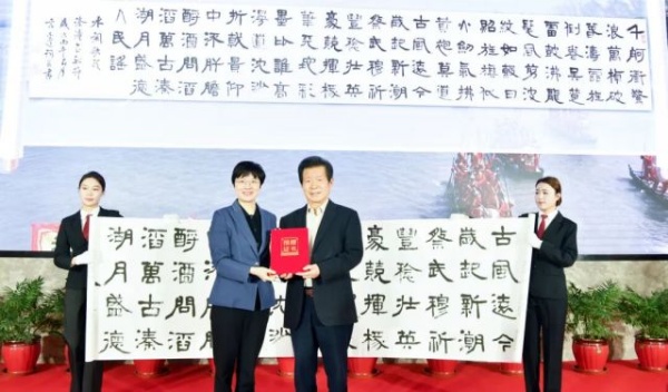 4月5日,言恭达教授凝聚匠心与乡情的佳作《水调歌头·溱潼会船节》6.5米汉隶长卷无偿捐赠泰州市姜堰区,将永久珍藏于该区美术馆,为全区文化传承注入新的活力。