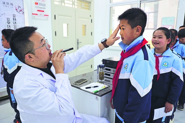 图为公益医疗专家团队开展视力检查。 魏文佳摄
