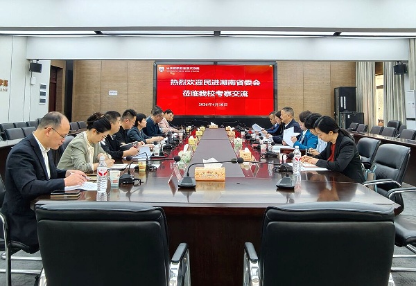 4月10日上午,民进湖南省委会专职副主委黄铁华,省人大常委会委员、民进湖南省委会副主委、长沙市委会主委李平一行6人来长沙民政职院考察交流。长沙民政职院党委副书记、校长陈静彬,党委副书记周立华,相关部门负责人以及民进会员参加座谈。