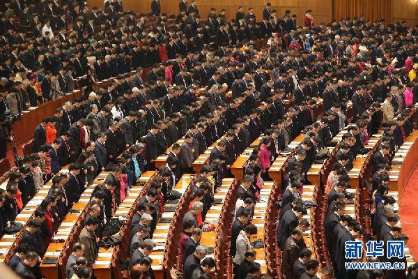 与会2000多名委员起立,向昆明“3·01”遇害无辜民众默哀。