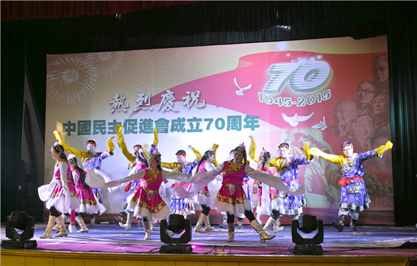 民进甘肃省委会机关干部编排舞蹈在庆祝民进成立70周年文艺演出中表演