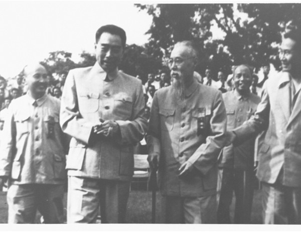 50年代,毛主席与马叙伦、何香凝在一起
