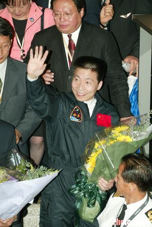 中国首名升空航天员杨利伟及随行代表团乘坐专机于2003年10月31日下午5时36分抵达香港。 |