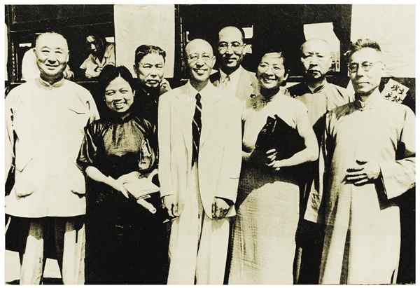 1946年6月23日,和平请愿团临上火车前合影。前排右二为雷洁琼。