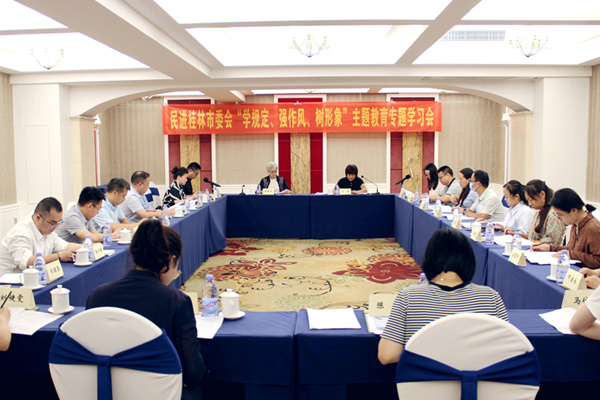7月15日,民进桂林市委会召开“学规定、强作风、树形象”主题教育专题学习会,民进广西区委会主委杨静华出席并讲话。