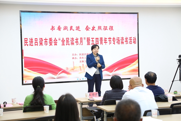 民进吕梁市委会举行“全民读书月”暨五四青年节专场读书活动,主分会场联动“云端共读”。
