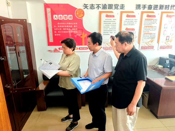 民进吕梁市委会开展“学规定、强作风、树形象”主题教育“大走访”“大调研”活动,图为7月16日在文水支部调研督导。