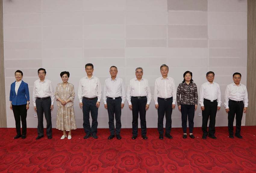 中国民主促进会第十五届中央委员会主席、副主席合影。左起:李玛琳、黄震、陶凯元、张雨东、蔡达峰、朱永新、王刚、庞丽娟、高友东、何志敏
