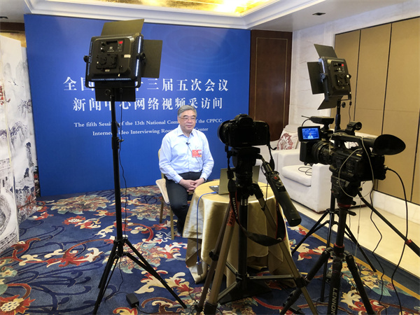 3月3日,全国政协常委兼副秘书长、民进中央副主席朱永新在驻地接受新华网采访。