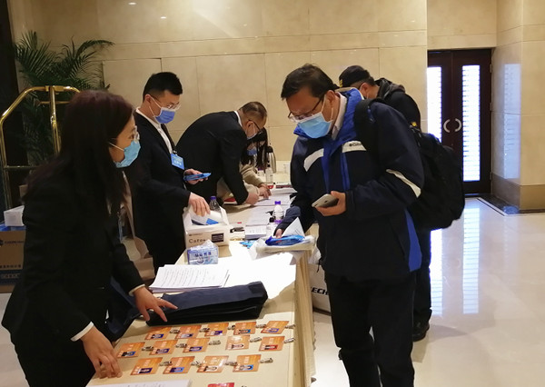 大会秘书处提前与五洲大酒店有关负责同志进行了积极的筹备和接洽工作,严格按照疫情防控工作要求做好了会议的各项准备工作。在大会驻地一楼架设了报到台,迎候前来报到的委员。工作人员仪表整洁,精神饱满,工作井然有序、有条不紊。证件、材料、房卡、口罩一条龙服务。细致周到的服务工作为全会的顺利召开提供了有力的保障,相信这次全会一定会取得圆满成功!