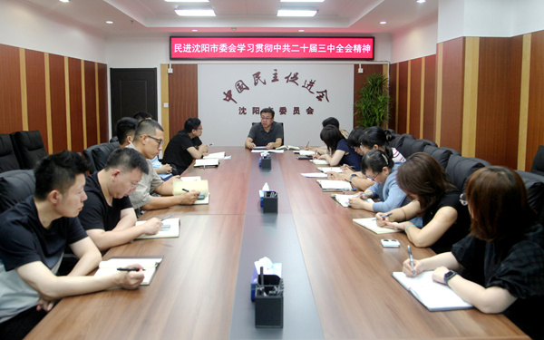 7月22日,民进沈阳市委会在机关召开专题学习会,第一时间传达全省、全市学习贯彻党的二十届三中全会精神大会精神,围绕学习贯彻中共二十届三中全会精神开展专题学习,结合工作实际研究部署贯彻落实具体举措。民进辽宁省委会副主委、沈阳市委会主委赵凯作精神传达并领学。