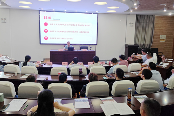 张海波以《民主党派作风建设及“五个纪要”解读》为题,紧扣学习贯彻习近平总书记关于民主党派工作的一系列重要论述,系统回顾民主党派作风建设和内部监督工作的发展历程,深入分析新时代加强作风建设的必要性和紧迫性,总结作风建设取得的成效,指出存在不足并提出具体意见。报告政治站位高、理论内涵深、实践指导性强,为市委会进一步加强自身建设、深化内部监督、规范纪律处分和组织处理工作提供了重要指导。