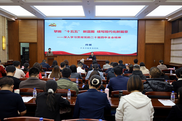 本次报告会特别邀请中共吉林省委党校一级巡视员、名师工作室首席专家闫越作专题辅导。他以《“十五五”规划建议勾勒中国式现代化新蓝图——党的二十届四中全会精神解读》为题,凭借深厚的学术造诣和丰富的实践经验,通过系统阐释、生动案例和精准解读,深入剖析了中共二十届四中全会的重大意义,为现场听众清晰梳理了贯彻落实全会精神、助力“十五五”规划落地见效的路径,带来了一场兼具理论深度和实践指导意义的思想盛宴。报告深入浅出、内涵丰富,赢得了现场听众的阵阵掌声。大家纷纷表示,通过学习,对全会精神有了更全面的理解和更深刻的把握,深受启发、获益匪浅。