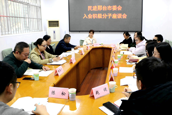 12月10日,民进邢台市委会召开入会积极分子座谈会。会议由市委会主委万雅静主持,专职副主委李莉莉,秘书长梁剑及10名入会积极分子参加会议。中共邢台市委统战部党派科科长张天阳出席会议。