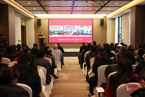 郭同永作区委会2025年度工作总结,并部署2026年重点工作。钟代笛为受市委会表彰的先进基层组织、“双岗建功”优秀会员和会史知识竞赛优秀个人颁奖。别必亮为离任支部主委颁发庆祝民进成立80周年纪念邮折。郭同永为锦川酒店“民进会员之家”授牌。