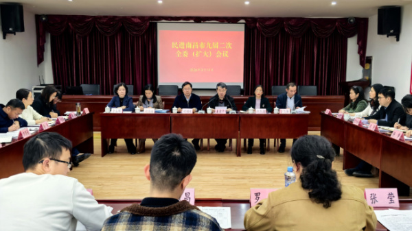 3月13日,民进南昌市委会召开九届二次全体(扩大)会议。市委会主委谭绍木主持会议并讲话。中共南昌市委统战部副部长,市侨联党组书记、主席麦建宁到会指导并讲话。