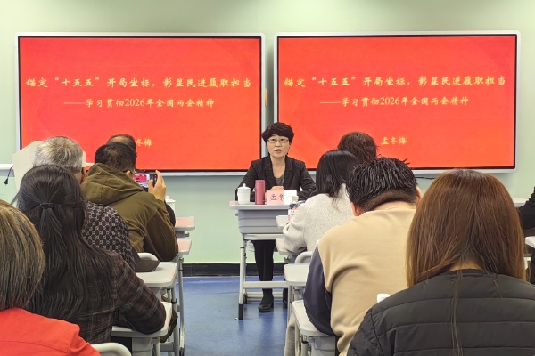 孟冬梅结合民进界别特色和天津发展实际,作题为《锚定“十五五”开局坐标,彰显民进履职担当》的专题宣讲。她从2026年全国两会主要内容,深刻理解、系统把握全国两会精神,奋力绘就天津民进贯彻落实两会精神实干画卷三个方面,传达了全国两会精神。孟冬梅希望,广大会员深入学习习近平总书记重要讲话和全国两会精神,立足界别特色、发挥专业优势,以议政建言的“实招”、社会服务的“特色”、自身建设的“实效”,为天津在京津冀协同发展中展现新作为、实现新突破,为全面建设社会主义现代化大都市贡献民进智慧和力量。