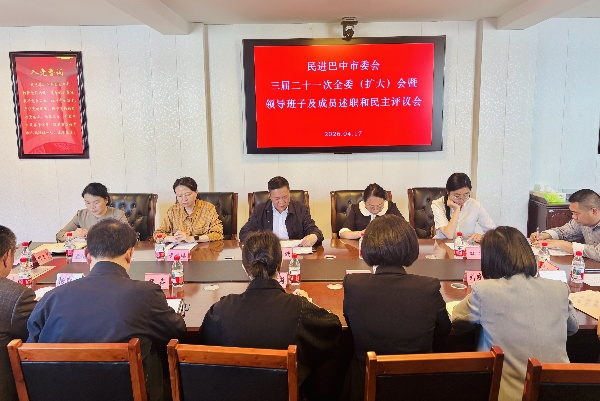 4月17日下午,民进巴中市委会三届二十一次全体(扩大)会议暨领导班子及成员述职评议和民主推荐会召开。市委会主委秦渊主持会议。