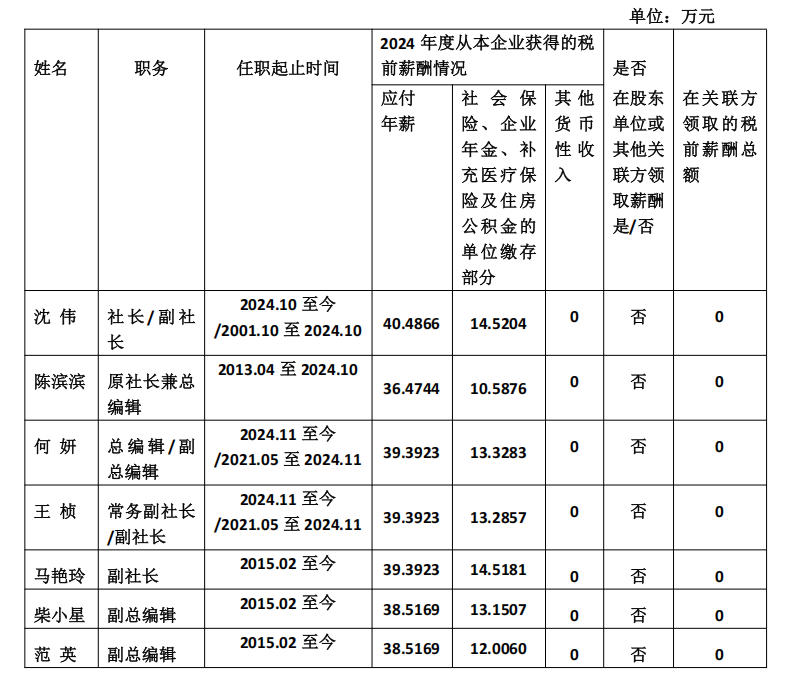 上述披露薪酬为开明出版社有限公司执行董事及高级管理人员2024年度全部应发税前薪酬(不含发放的以往年度绩效年薪)。