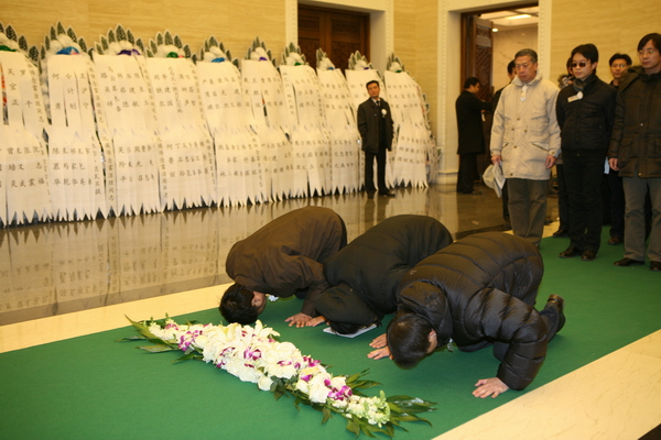 人们在雷老遗体前深深鞠躬,有人俯地叩首,低声哭泣、不舍离去。