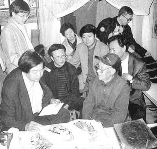 中国民间文艺家协会主席冯骥才(左)实地考察绵竹年画作坊