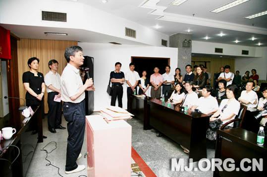广东民进秘书长胡献介绍了地震发生以来广东民进抗震救灾的情况:“5月12日14时28分四川省汶川县发生的8.O级强烈地震,给人民生命财产安全造成了前所未有的巨大伤害!在党中央、国务院坚强领导下,全国各族人民万众一心、众志成城,和衷共济、踊跃捐献,形成了抗击地震灾害的强大力量,开展了规模空前的抗震救灾斗争。社会各界都伸出援手以帮助受灾的同胞,广东民进也在第一时间发动会员为灾区人民重建家园捐款,仅到5月28日,广东6700多名民进会员共向灾区捐款356多万元,捐赠价值200多万元的救灾物资和价值250万元的书画作品。其中我会会员、著名画家、原广州画院院长陈永锵捐出价值100多万元的国画精品;民进广东省委委员、民进广州市委副主委、广州画院副院长叶献民,原民进广东省委委员区晖为四川地震灾区捐献价值120多万元的书画作品;广东教育学院支部的林炜教授个人捐款15万元并组织亲友共捐50万元为灾区建造一所学校。民进会员、著名音乐人吴颂今饱含热泪谱写新歌,联手京昌穗三地歌手演唱录音,为四川地震灾区千千万万受灾群众《祈福平安》,讴歌《人间有情》,呼唤人们《献出你的爱》,为奋战在抗震一线的军民救援大军奉献爱心!”