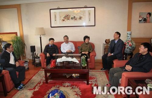 严主席一行先来到许嘉璐家,许主席早已在春意盎然的客厅迎候。今年74岁的许嘉璐从全国人大常委会副委员长、民进中央主席任上退下来后,继续为弘扬中华文化奔走,身兼数职,学术和社会活动繁多,仍像在职时一样忙碌。大家话题聊着聊着,就自然谈到了文化建设上面,讲到了大陆与台湾的文化差距和两岸可以进行的文化交流与合作,讲到了文化创意、小城镇建设、三农问题、志愿者。许嘉璐非常关心对台工作和民进在文化方面的参政议政,提出很多建议,他希望民进在文化方面的参政议政不仅可以立言,还可以做一些力所能及的事。严主席则向许主席介绍了民进中央今年参政议政课题和对社会建设、文化建设问题的思考。