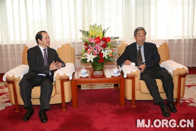 10月10日,全国人大常委会副委员长、民进中央主席许嘉璐在北京亲切会见了日中新世纪会事务局长吉村善和一行。