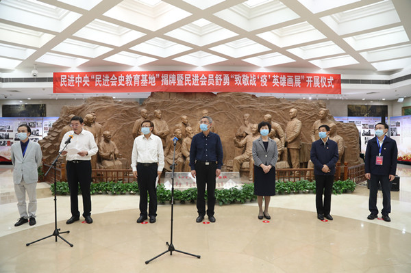 9月25日下午,“民进会史教育基地”揭牌暨民进会员舒勇“致敬战‘疫’英雄画展”开展仪式