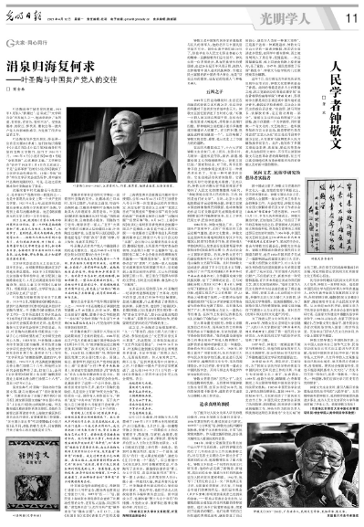 《光明日报》报道叶圣陶与中国共产党人的交往。
