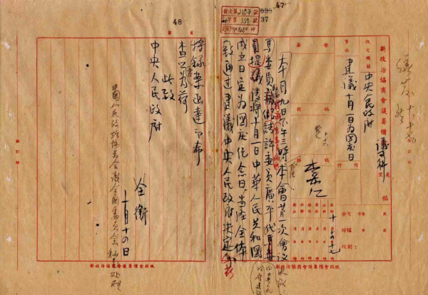 1949年10月9日全国政协一届一次会议上,许广平代表马叙伦建议中央人民政府定10月1日为中华人民共和国国庆纪念日。