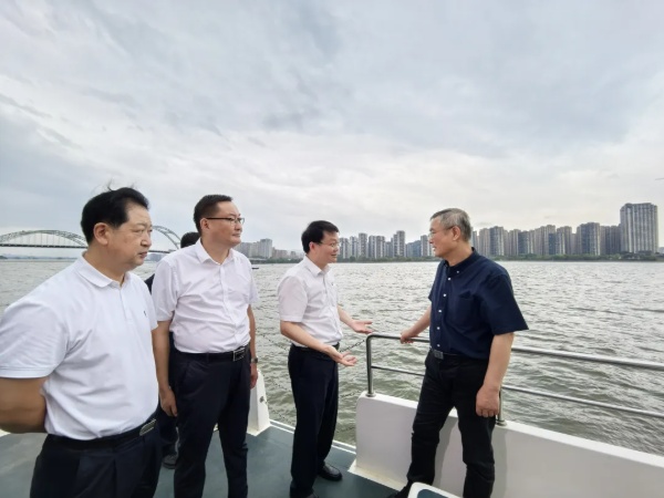 第一张照片拍摄于2025年9月,讲述了民进中央主席、长江生态环境保护民主监督工作领导小组组长蔡达峰率队赴江西省吉安市,乘船实地查看赣江水生态环境治理情况、开展监督调研的故事。