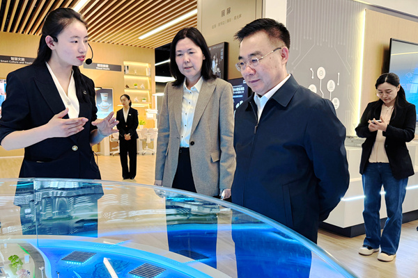 4月2日下午,民进中央副主席何志敏率民进中央调研组在北京经济技术开发区就“完善新兴领域知识产权保护制度与执法”课题开展专题调研。图为调研组实地考察京东方技术创新中心。