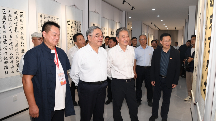 朱永新出席庆祝民进成立80周年九省书画作品邀请展开幕式并调研